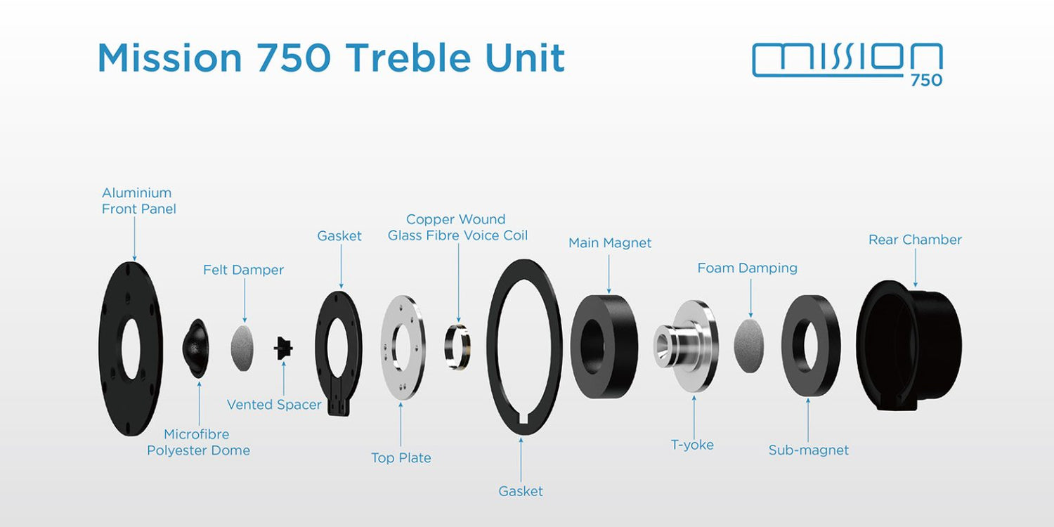 With a high-frequency performance eerily close to that of the flagship 770, the Mission 750 also incorporates a specially damped rear chamber which aids in resonance control, extends bandwidth and facilitates the crossover frequency for super smooth treble performance.
